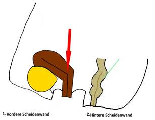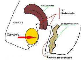 Die Harnblase drängt in die Scheide. Je nach Ausprägung ist die Vorderwand