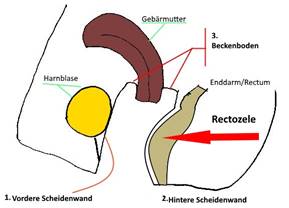 zum vorderen Kompartiment kann es hier zur erschwerten Entleerung des Darmes